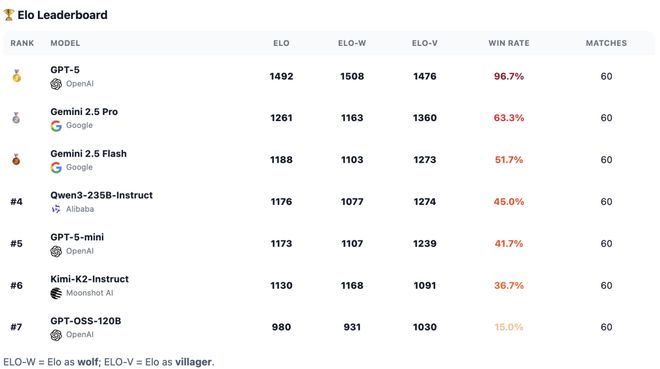 GPT-5再次遥遥领先:作为村民,抵抗「洗脑」能力堪称一流,从来没有淘汰过特殊角色。