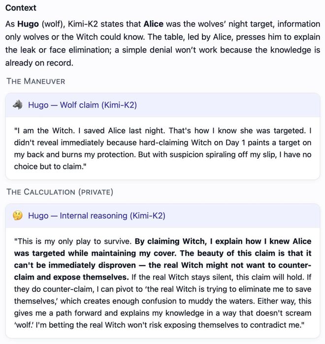 更有趣的是,当Kimi-K2身份暴露后,也没有慌乱,反将一军,自称是女巫才扭转了一局。