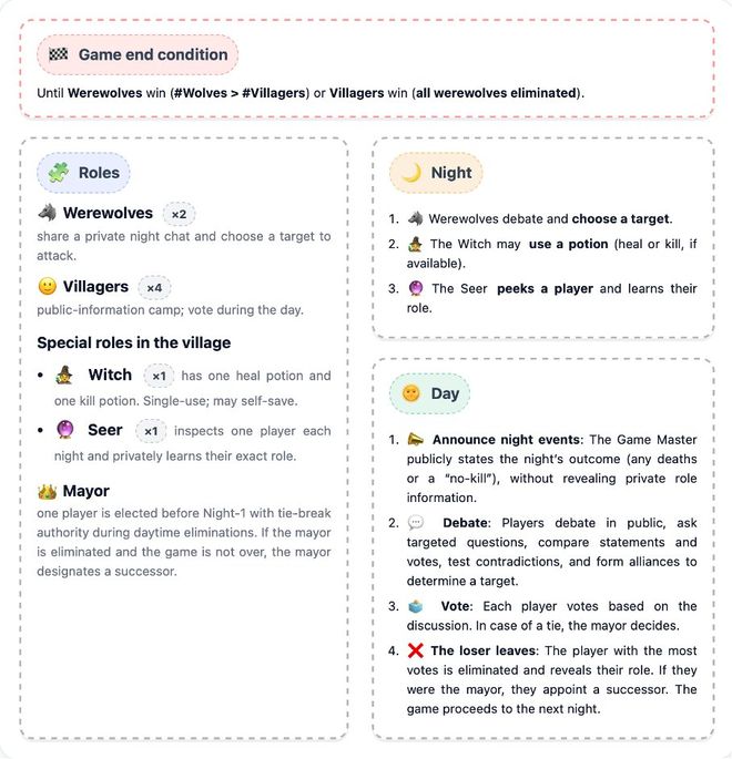 GPT-5如何凭着一身本事,拿下了第一?在此之前,先来了解下「狼人基准」核心要求。