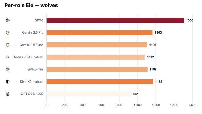 一张最终结果图,可以看得出,GPT-5是所有狼人中最有「头脑」的LLM。